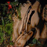 Chaude blonde au jardin.