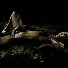 La douce asiatique prend son plaisir dans le soir qui descend.