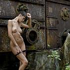 In an old abandoned factory, our pretty brunette simpers for your enjoyment.