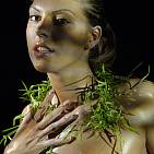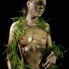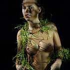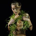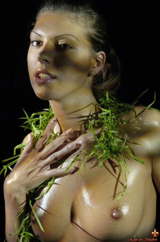 The naughty brunette in black and green.