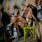 La bellissime brune joue pour vous dans un viel atelier.