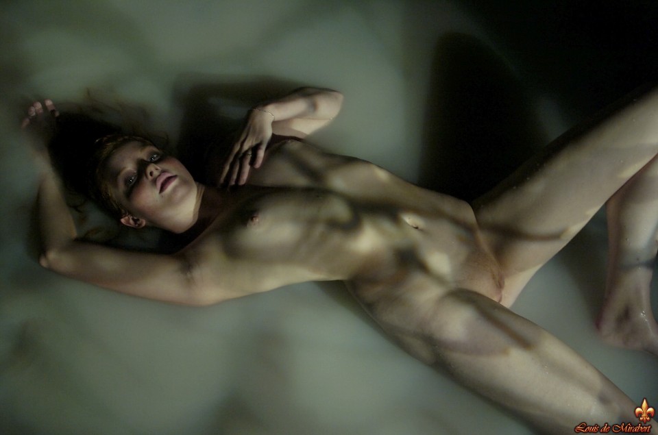 Nice and erotic redhead in a bath.