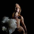 La blonde jeune fille danse avec son plumeau.