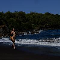 La mince Liana sur une plage caribéenne