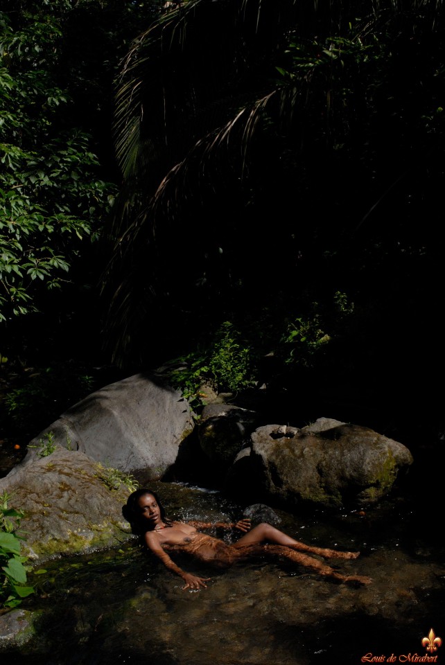 La belle jeune fille dans une rivière exotique