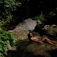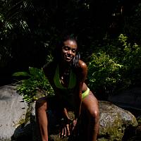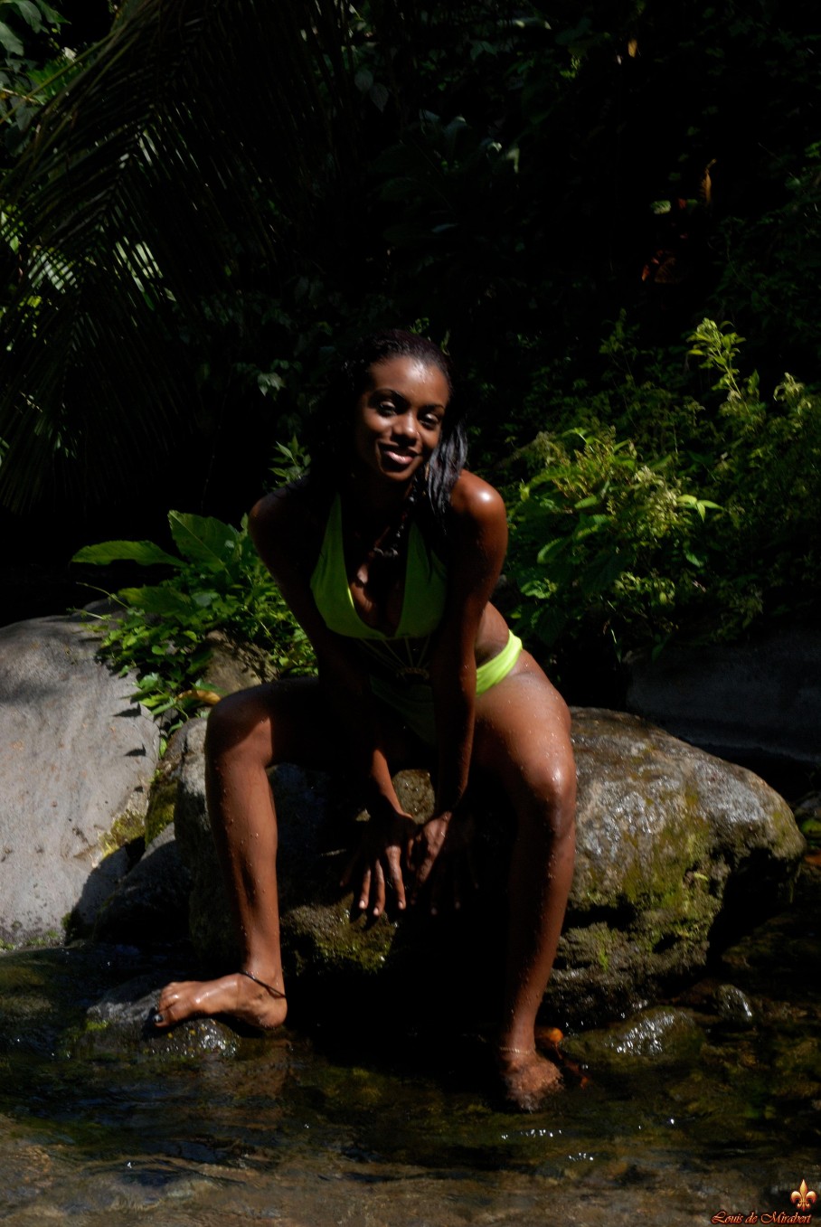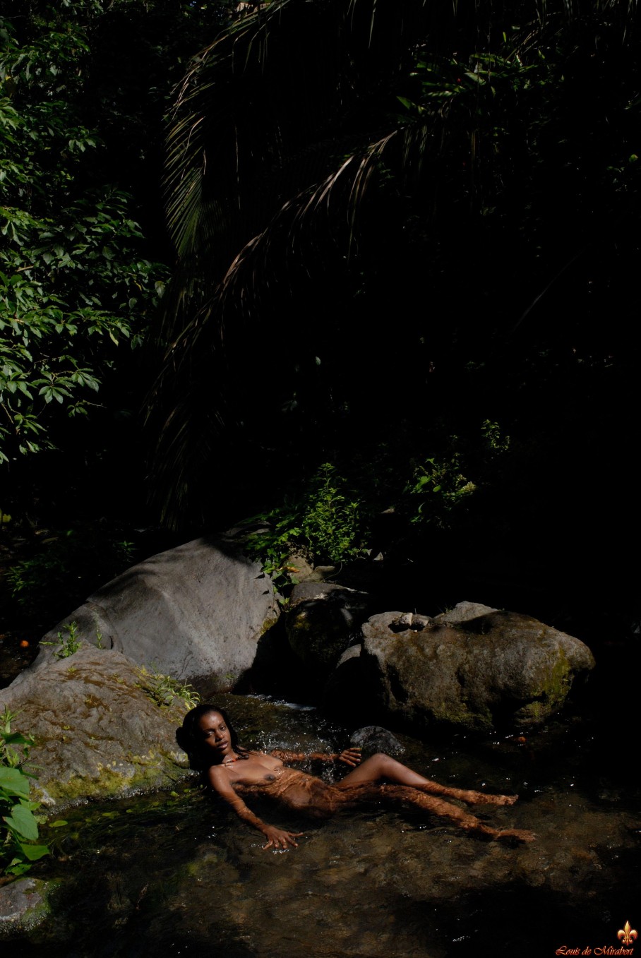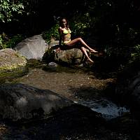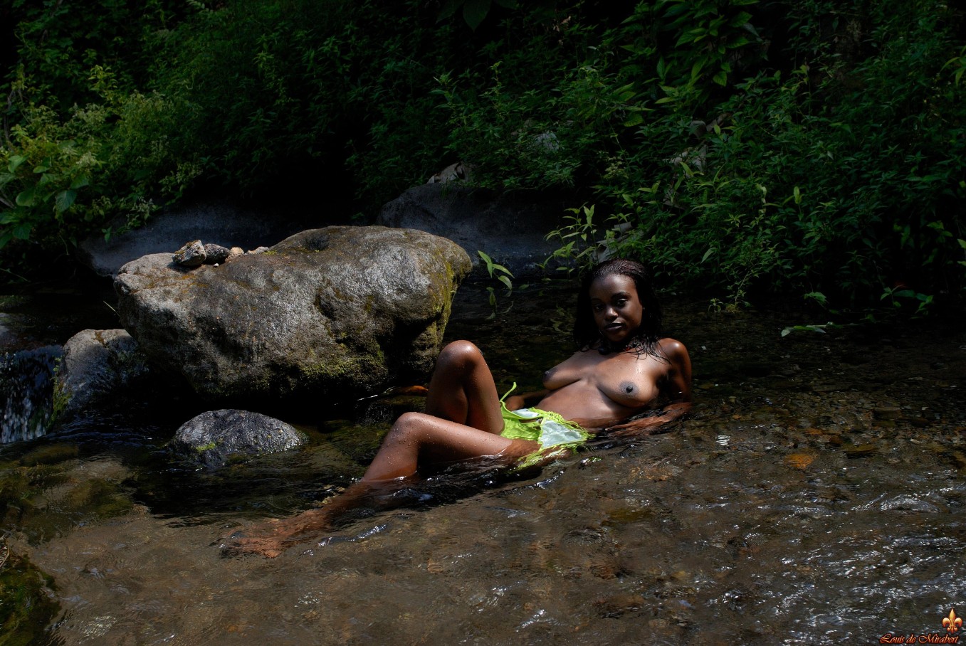 La belle jeune fille dans une rivière exotique