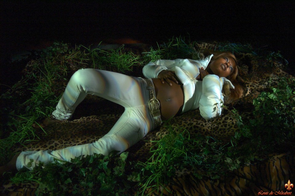 A young and beautiful black girl in shadow vespers