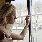 The gorgeous blonde girl boarded a barge for a photo shoot, She took the bar and watch naked in front of the Eiffel Tower
