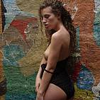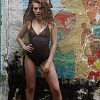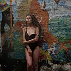 The beautiful Katia walks in an old dilapidated factory