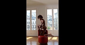 Exhibition of the sumptuous Jess on a red armchair (Photos by Philippe Lesage)