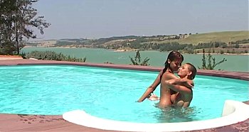 Deux petites lesbiennes en amour dans une piscine de rêve ! Erotique et glamour.(Suite & fin)