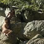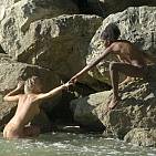 The pretty Stéphie joins the sumptuous Channone near the magnificent tropical waterfall and begins their little caresses while Aymeric and Sandi discreetly move away. (Continuation and end)
