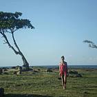 Coral has cut his hair, I find her really beautiful on the volcanic beach.