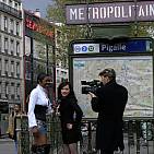 A naughty interview with Penelope Tiger in the streets of Pigalle by beautiful Anksa Kara front of surprised tourists