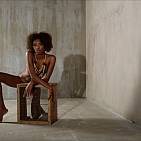 Une ravissante jeune fille black seule dans une vieille remise se fait plaisir devant un vieux radiateur