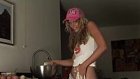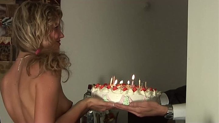 Betty Birthday cake The sweet blonde girl bakes beautiful cake for her lover and offered as gifts 13 min Video