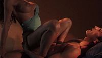 Devant un pauvre mec ficelé comme un saucisson et au regard de vache morte, les deux ravissantes petites se lutinent dans une vieille cave