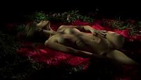 The pretty blonde with natural breasts resting in the evening light.