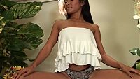 The slim and lovely Asian girl plays with her slender body just for you