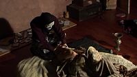 The young girl is resting quietly when a bad boy comes to strangle her by surprise ! This is of course a fiction and the young girl will emerge unscathed.