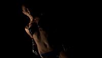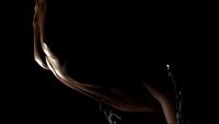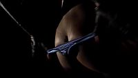 A young girl dancing with a thin whip and vinyl undressed