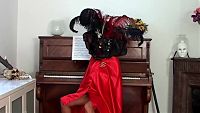 Aeline Venise on piano The lovely young slim blonde woman plays the piano at the Venice carnival 9 min Video