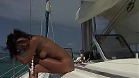 Marie, voilier érotique La merveilleuse jeune fille vous aguiche sur la mer bleue des Caraïbes. Erotique et sensuel. 121 Photos 16 min Vidéo BTS