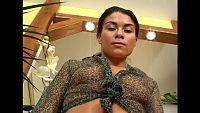 Charlene, the beautiful girl with perfect breasts, is having fun with a nice green crystal dildo