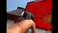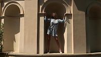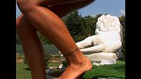 Laura Sweet with a marble lion The young and cute Laura Sweet plays with a marble lion in the garden of a luxury villa 10 min Video