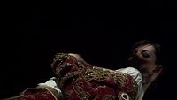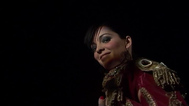 Under the applause of the crowd, the beautiful bullfighter plays with her perfect body in the evening heat