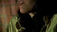 In the old staircase of a palace, the slender girl plays with her slender body for your pleasure