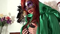 Ashley Robbins green carnival The beautiful redheaded girl offers you her naturalness in a swirl of green satin and feathers 11 min Video