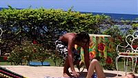 Entre deux tournages, les trois complices passent le temps en jouant avec les rayons du soleil tropical, vous pouvez voir qu'une séance vidéo sur la belle "Isle de France" n'est pas désagréable
