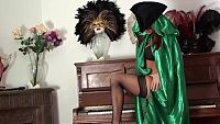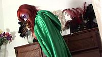 Ashley Robbins green carnival The beautiful redheaded girl offers you her naturalness in a swirl of green satin and feathers 11 min Video