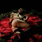 The pretty blonde with natural breasts resting in the evening light.