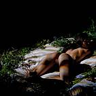 La jolie brune Melisa Mendini se réveille doucement dans l'ombre érotique du matin.