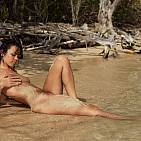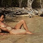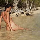 Sur une chaude plage caribéenne, la merveilleuse Corail présente son corps bronzé au soleil brûlant.