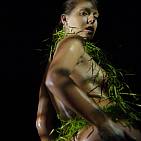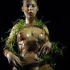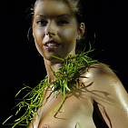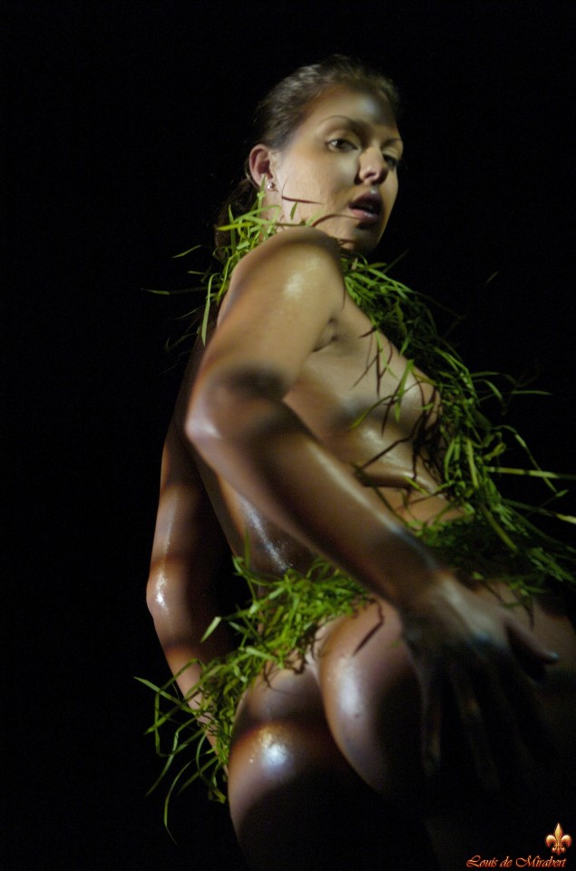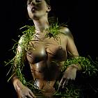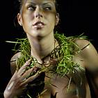 The naughty brunette in black and green.