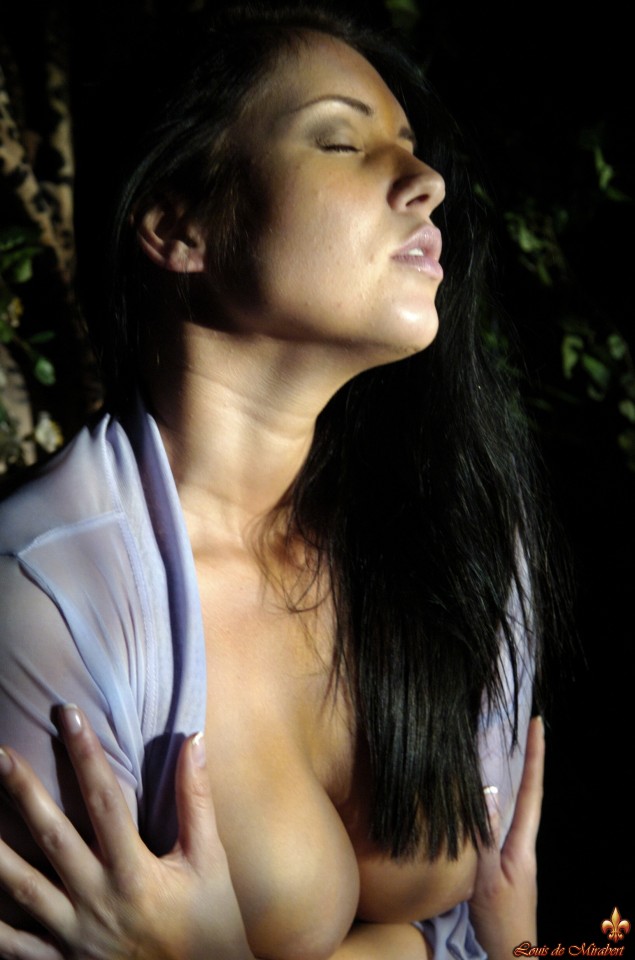 The gorgeous brunette, in a wet garden, fondling just for you.