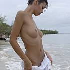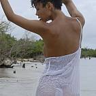 Un ouragan est passé sur les Caraïbes. la chaleur moîte incite la belle Corail a se rafraîchir.