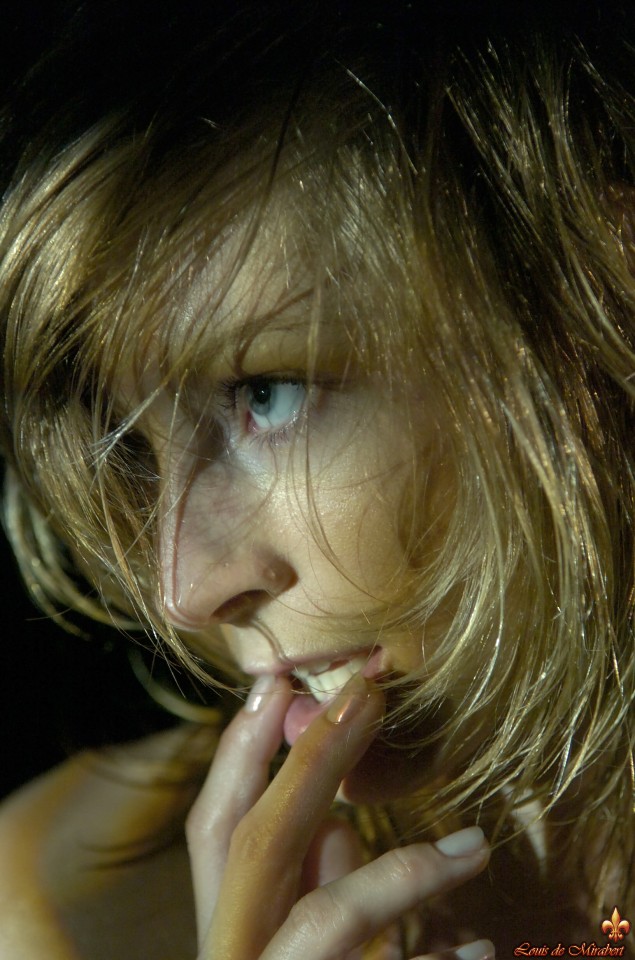 The young blonde, body toned and oiled, is pleased.