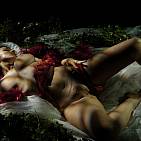 The beautiful girl plays with her massive and natural breasts