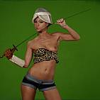 Sexy, brunette trains in an erotic duel !