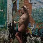 The beautiful Katia walks in an old dilapidated factory