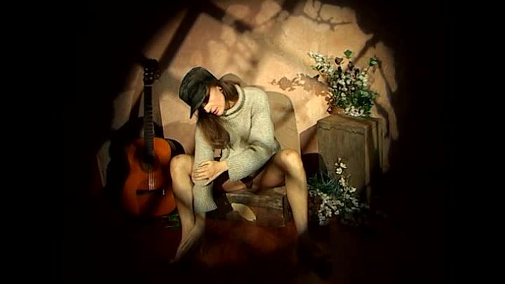 La belle jeune fille blonde s'ennuie en jouant de la guitare, mais elle a trouvé un moyen de tromper son ennui !