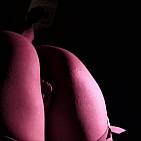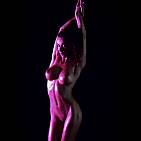 La belle pornstar aux gros seins joue avec sa foufoune dans l'ombre et les lumières colorées