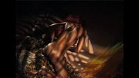 This beautiful couple caresses each other romantically in the evening shadows.
