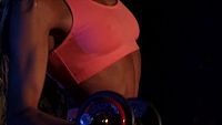 Blonde and muscular, the beautiful Celine starts her gym session, it will slip into naughty pleasures