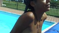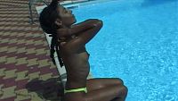 Joanna pool & sun The attractive young black girl gently plays in a swimming pool in the Toulouse sun 8 min Video