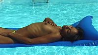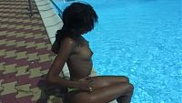 Joanna pool & sun The attractive young black girl gently plays in a swimming pool in the Toulouse sun 8 min Video